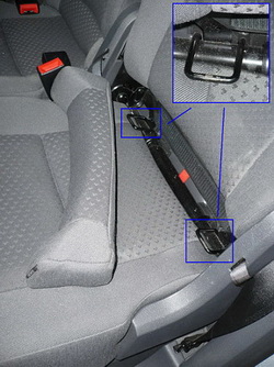 Он располагается в верхней части спинки кресла и крепится к скобе, расположенной в полу или потолке автомобиля (в зависимости от типа кузова и модели, о наличии этой точки крепления должно быть написано в руководстве пользования автомобилем).